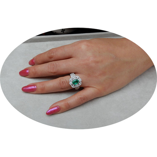 Alle gegevens bekijkenRing, Smaragd, Diamant, Platina Platina (950/000) ring met smaragd, geheel omgeven door diamanten. GERESERVEERD Slijpsel: ovaal gemengd & brilj...