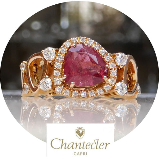 Chantecler, Ring, Divina, Rubeliet, 18K 18krt. rosé gouden ring met schakels, bezet met rubeliet (rood) toermalijn en diamanten. Slijpsel: fantas...