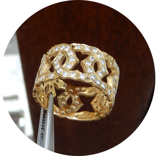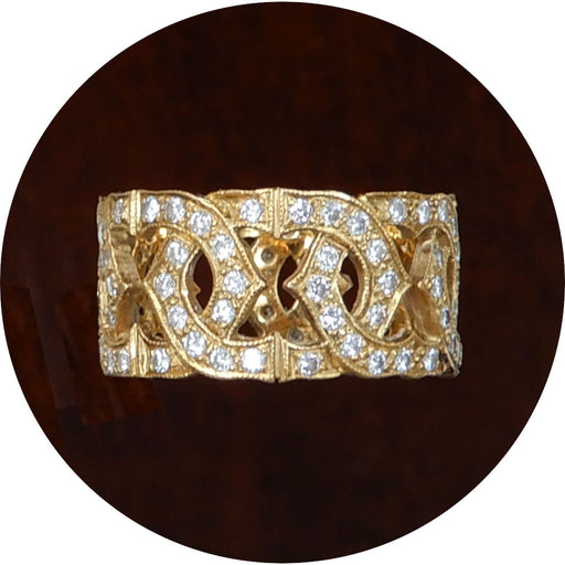 Alle gegevens bekijkenRing, Diamant, C, 18K Goud 18krt. geelgouden bandring met dubbel C-motief, bezet met diamanten, rondom. Slijpsel: briljant Carat: circa 0,98 ct. ...