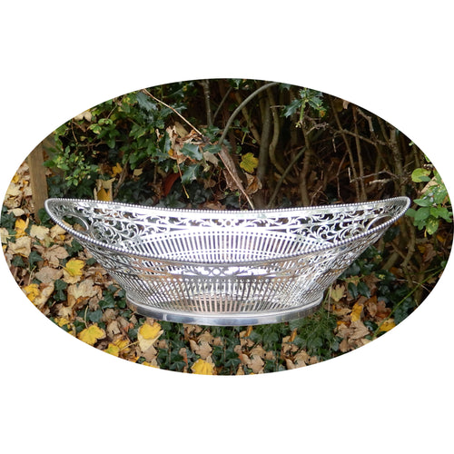 Alle gegevens bekijkenZilveren Broodmand, Floraalmotief Zilveren broodmand, ovaal model met floraalmotief, accoladerand en staand op standring met filetranden. Gehalte...
