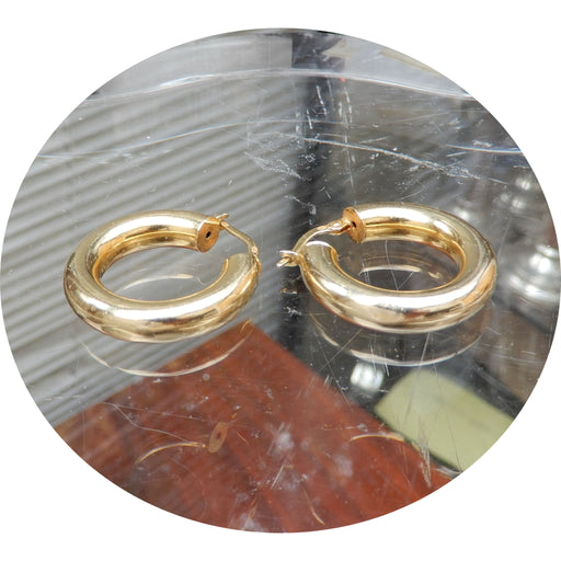 De Gouden EeuwCreolen, 14K Goud 14krt. geelgouden creolen, bolvormig, glad model. - enkele butsjes - Diameter: 2,5 cm Dikte: 5 mm Gewicht: 4,2 gram (2 x 2,1) P...