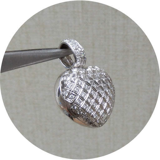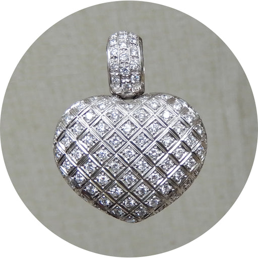 De Gouden EeuwHanger, Hart, Diamant, 18K Witgoud 18krt. witgouden hanger,hart, met pavé gezette diamanten, in fraai cassettevormige zettingen, de haak eveneens b...