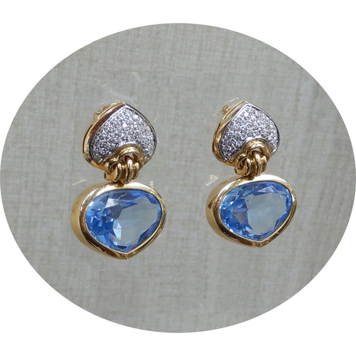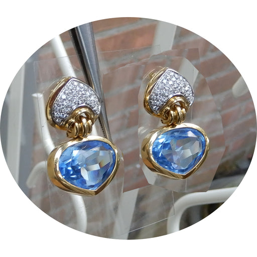 De Gouden EeuwOorbellen, Topaas, Swiss Blue, Diamant, 18K 18krt. geelgouden oorhangers met swiss blue topaas en pave diamant, in witgoud gezet. Slijpsel: gemen...