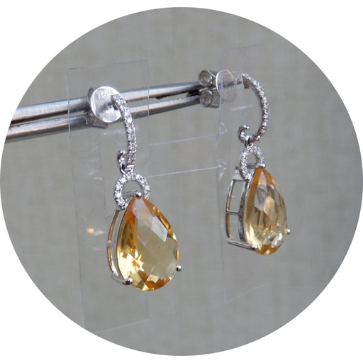 Oorhangers, Citrien, Diamant, 18K Witgoud