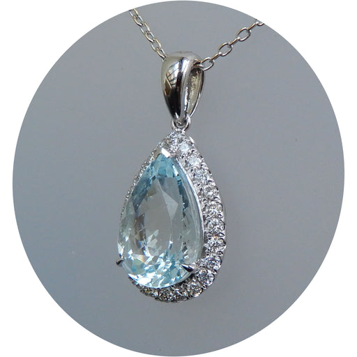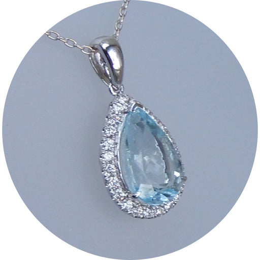 De Gouden EeuwHanger, Aquamarijn Diamant, 18K Witgoud 18krt. witgouden hanger met aquamarijn en diamant. Slijpsel: pendeloque & briljant Carat: circa 3,41...