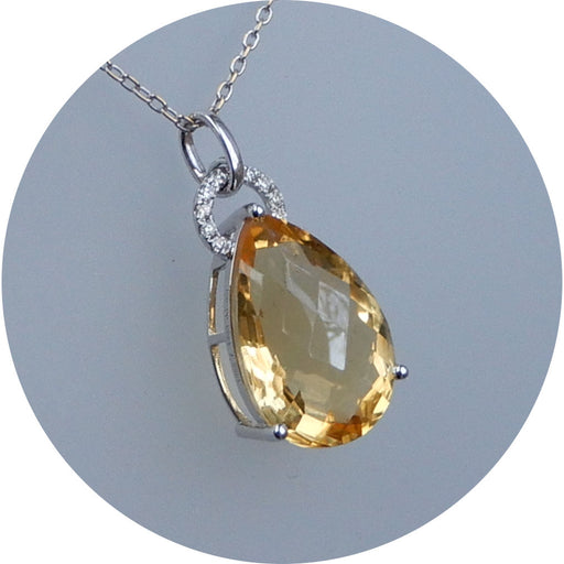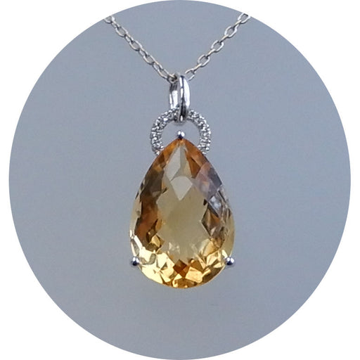 De Gouden EeuwHanger, Citrien, 18K/14K Goud 18krt. witgouden hanger met citrien en diamant, hieraan een 14krt. witgouden ankerschakel collier. Slijpsel: pendel...