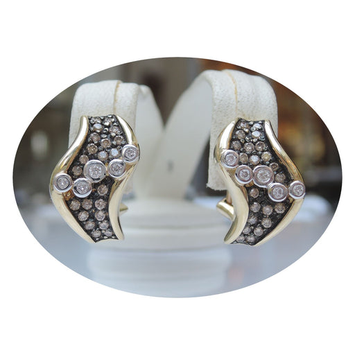 De Gouden EeuwOorbellen, Cognac Diamant, 14K 14krt. geelgouden oorstekers met witte- en cognac-kleur diamanten, in witgoud en zwart gerhodineerde zettingen. Sl...