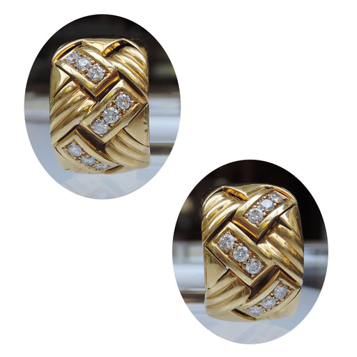 De Gouden EeuwOorbellen, Diamant, 18K Goud 18krt. geelgouden oorbellen met vlechtwerkmotief, bezet met 2 x 9 diamanten. Slijpsel: briljant Carat: circa 0,90 ...