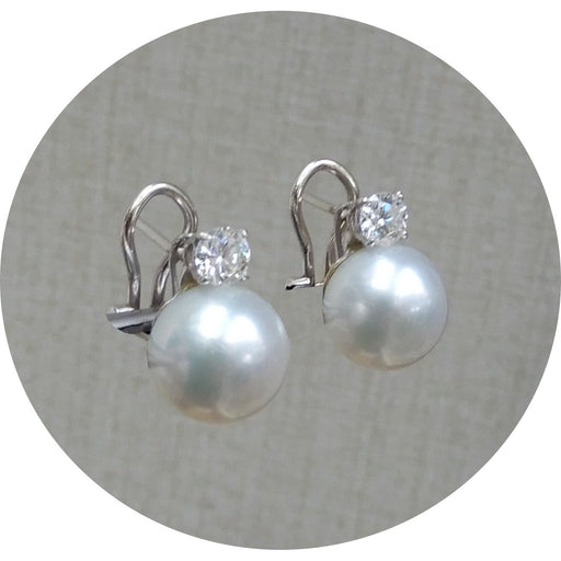 De Gouden EeuwOorknoppen, Zuidzee Parel, 18K Goud 18krt. witgouden oorstekers met witte zuidzee parel en diamant. Slijpsel: briljant Carat: circa 0,06 ct. diam...