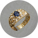 18krt. geelgouden bandring met saffier en diamant, in kratervormige zettingen.