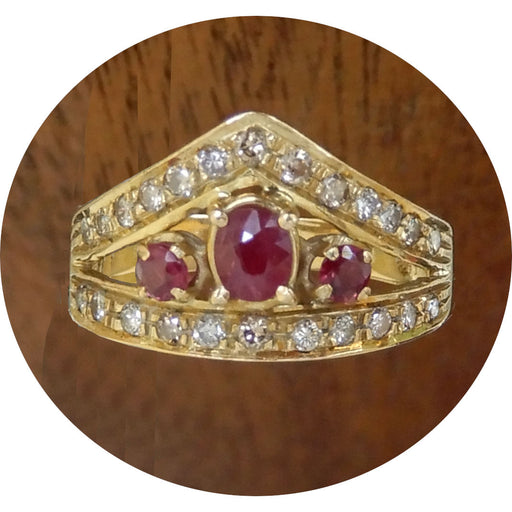 Alle gegevens bekijkenRing, Robijn, Diamant, 14K, Retro