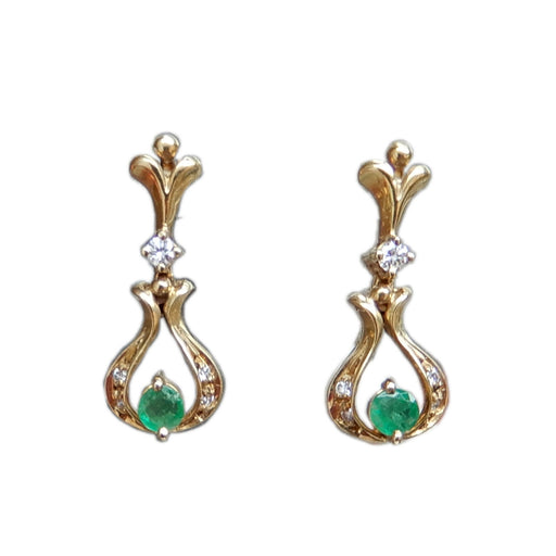 De Gouden EeuwOorstekers, Smaragd, Diamant, 14K 14krt. geelgouden oorstekers met smaragd en diamant. Slijpsel: fantasie & briljant Carat: circa 4,50 ct. ...