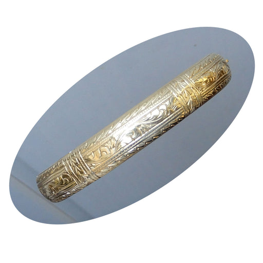 De Gouden EeuwSlavenarmband, Floraal, 14K Bicolor 14krt. bicolor (wit/geel) gouden slavenarmband met floraalmotief, scharnierend, en met sluiting. Binnenmaat: 5...