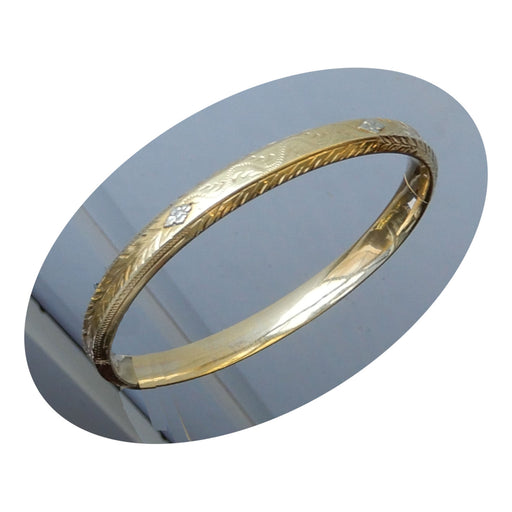 De Gouden EeuwArmband, Floraal, 14K Geelgoud 14krt. geelgouden slavenarmband met floraalmotief, geometrisch, en met blauw email, scharnierend en met sluiting en ...