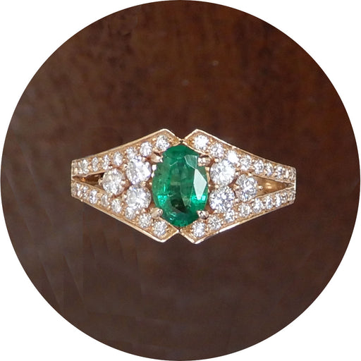 De Gouden EeuwRing, Smaragd, Diamant, 18K Rose Goud 18krt. rose gouden ring met smaragd en diamant. Slijpsel: ovaal gemengd & briljant Carat: circa 0,50 ct...