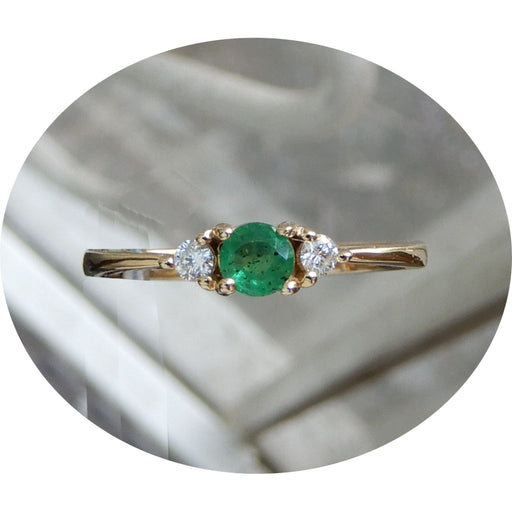 De Gouden EeuwRing, Smaragd, Diamant, 14K 14krt. geelgouden ring met smaragd en diamant. Slijpsel: rond gemengd & briljant Carat: circa 0,15 ct. smaragd en...