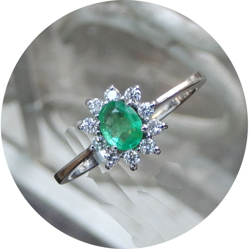 De Gouden EeuwRing, Entourage, Smaragd, Diamant, 14K 14krt. witgouden entourage ring met smaragd en diamant. Slijpsel: ovaal gemengd & briljant Carat: circ...