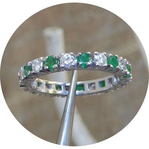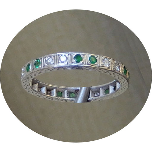 De Gouden EeuwRing, Alliance, Smaragd, Diamant, 14K 14krt. witgouden alliance ring met smaragd en diamant. Slijpsel: briljant & rond gemengd Carat: circa 0,...