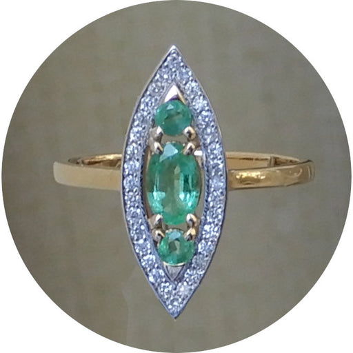 Alle gegevens bekijkenRing, Markies, Smaragd, Diamant, 14K