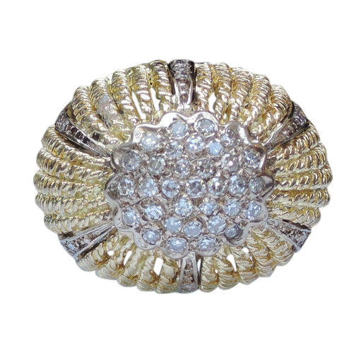 De Gouden EeuwTorenring, Diamant, 18K Goud 18krt. geelgouden torenring, bewerkt, met 55 diamanten, in witgoud gezet. VERKOCHT NIEUW: PRODUCT VIDEO Slijpsel: ach...