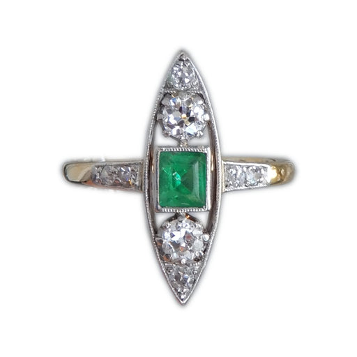 Alle gegevens bekijkenMarkiesring, Smaragd, Diamant, 14K, Art Deco