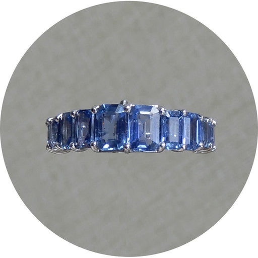 De Gouden EeuwAlliancering, Saffier, 18K 18krt. witgouden ring, halve alliance, met rechthoekige saffieren. VERKOCHT Slijpsel: emeraude Carat: circa 3,64 ct. saf...
