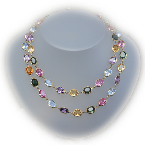 De Gouden EeuwCollier, Harlequin, Edelsteen Multicolor, 18K Collier, Harlequin, van ovaal gefacetteerde roze en blauwe kwarts, groene toermalijn, amethist en cit...