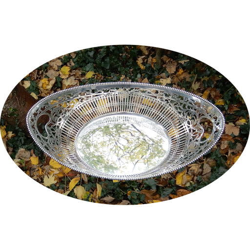 De Gouden EeuwZilveren Broodmand, Model Empire, Anno 1912 Zilveren broodmand, ajour gezaagd met spijlenmotief en parelranden. VERKOCHT Gehalte: 835/000 (= tweed...