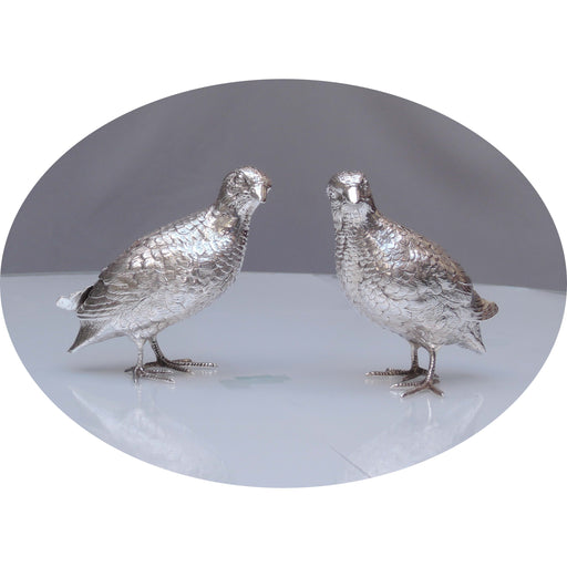 De Gouden EeuwZilveren kwartels, per paar of per stuk. -Prijs per stuk is € 695- Gehalte: 925/000 (= eerste gehalte zilver) Afmetingen (L x B x H): 11,5 x 4,75...