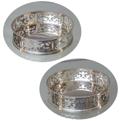 De Gouden EeuwEen paar zilveren flessenbakken, groot, bolvormig, glad model, met houten bodem. Gehalte: 925/000 Sterling (= eerste gehalte zilver) Meesterteke...