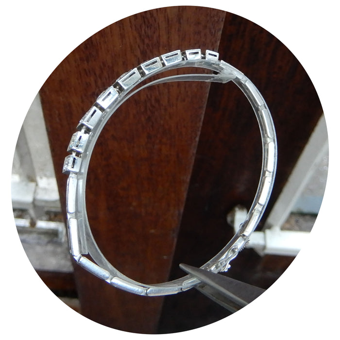 14krt. witgouden schakelarmband, bezet met 9 diamanten.
