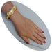 18krt geelgouden gesatineerde armband, bezet met 12 diamanten, scharnierend en met veiligheidskettinkje, binnenzijde glad.