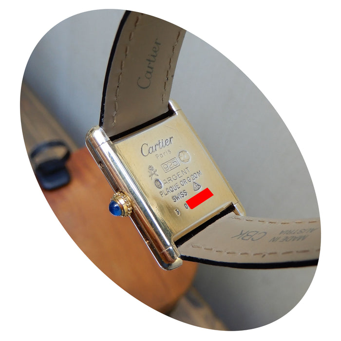 Must de Cartier, Tank, Dames Polshorloge met leder polsband.