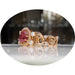 18krt. rosé gouden ring met schakels, bezet met rubeliet (rood) toermalijn en diamanten.