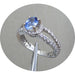 14krt. witgouden entouragering met een ovale saffier, en met entourage van diamanten, doorlopend op de scheen.
