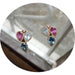 14krt. geelgouden oorknoppen met saffier, lichtblauwe/ roze topaas en diamant.
