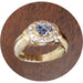 Carat: circa 0,97 ct. saffier en circa 0,28 ct. diamant totaal (14 x 0,02)